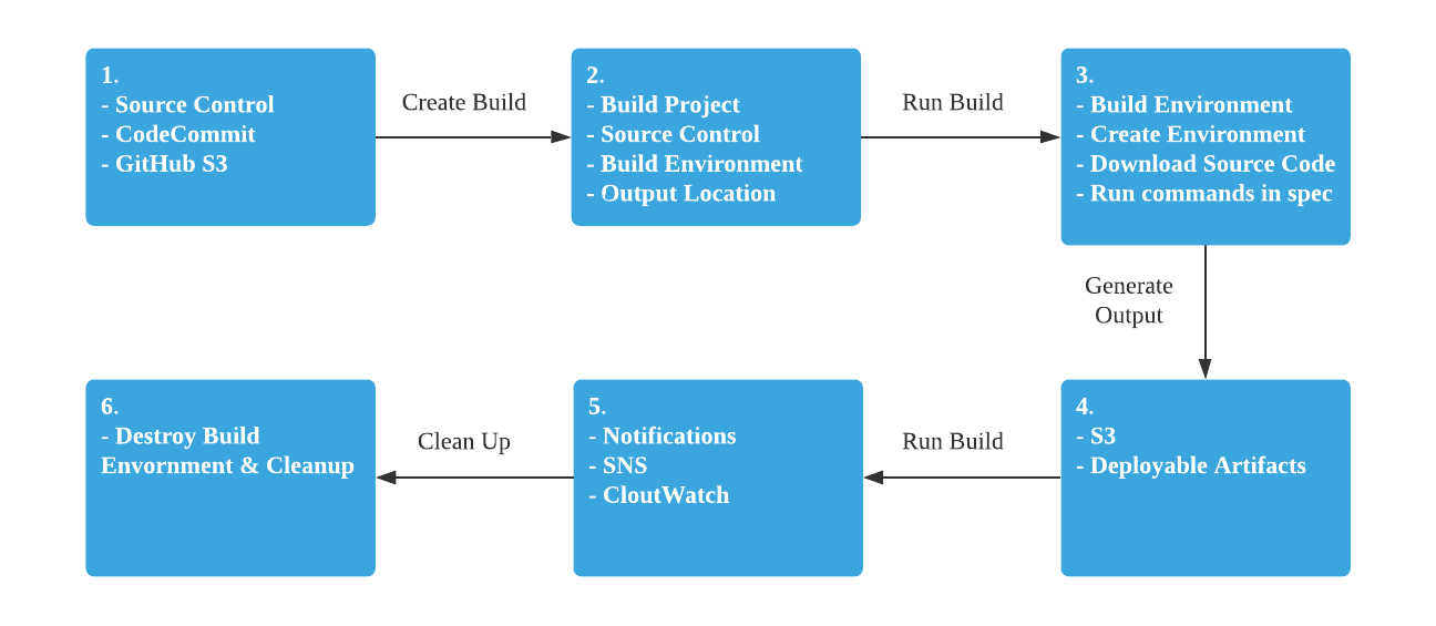 - AWS CodeBuild는 다음과 같은 방식으로 동작한다.