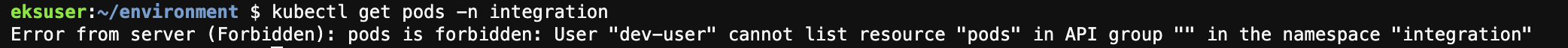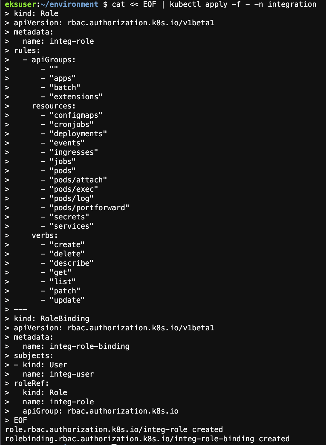 - k8sInteg Group에 IAM user를 위한 integration namespace