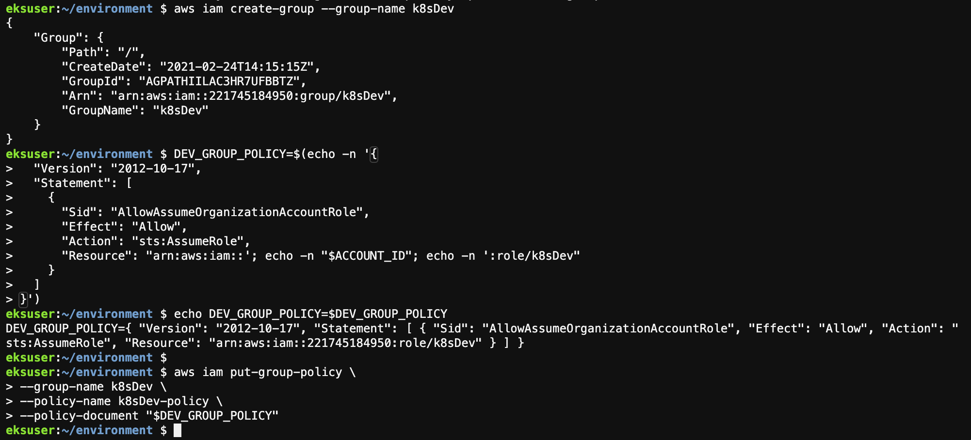 aws iam add-user-to-group --group-name k8sDev --user-name JeanDev