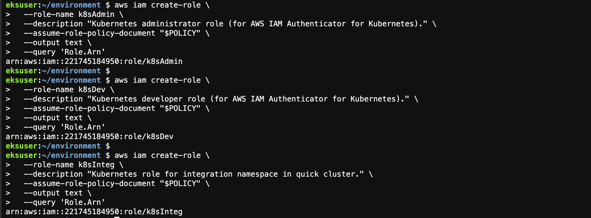 --description "Kubernetes developer role (for AWS IAM Authenticator for Kubernetes)." \