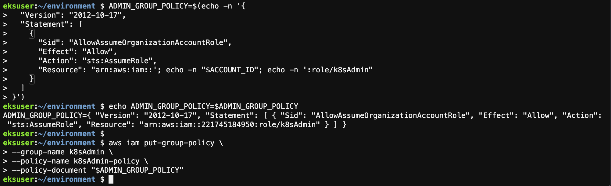 "Resource": "arn:aws:iam::'; echo -n "$ACCOUNT_ID"; echo -n ':role/k8sAdmin"