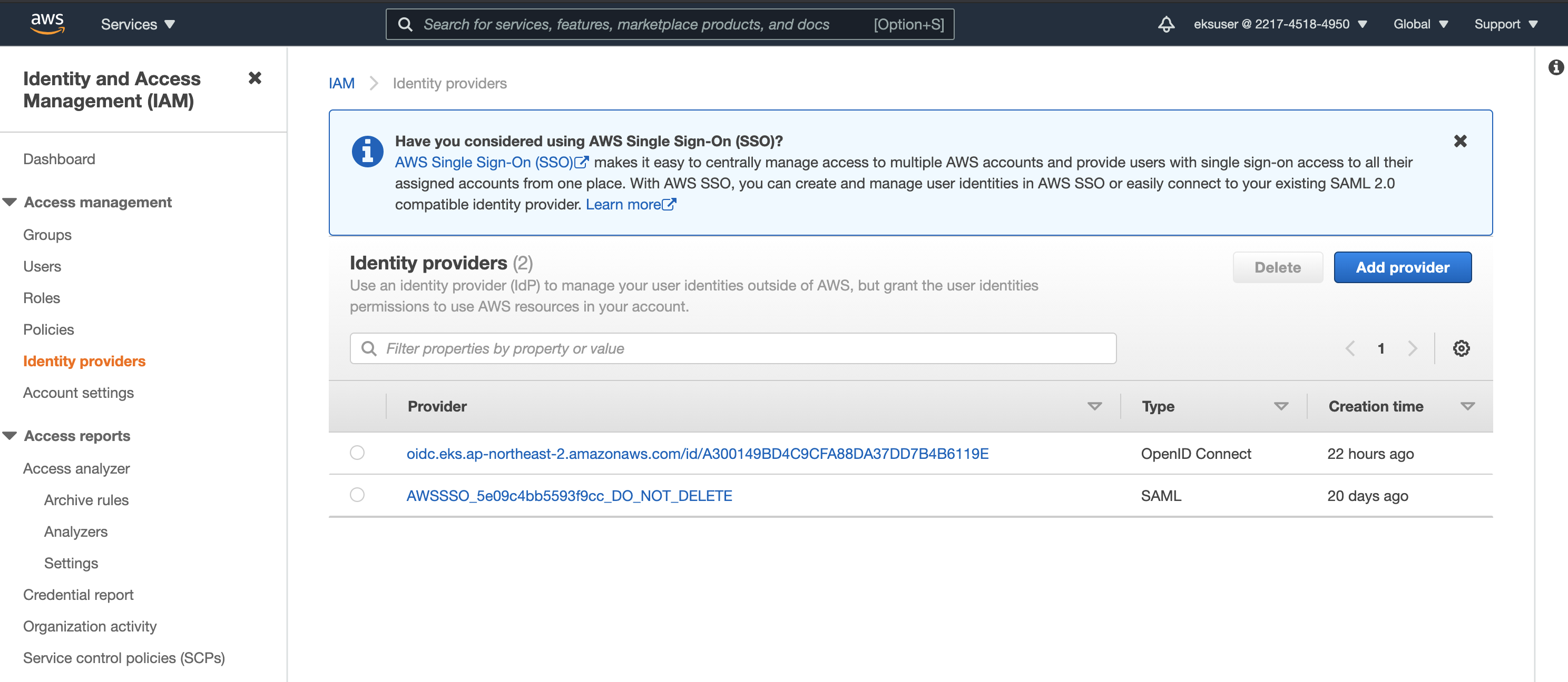 IAM Console에서 OIDC provider를 볼 수 있다.