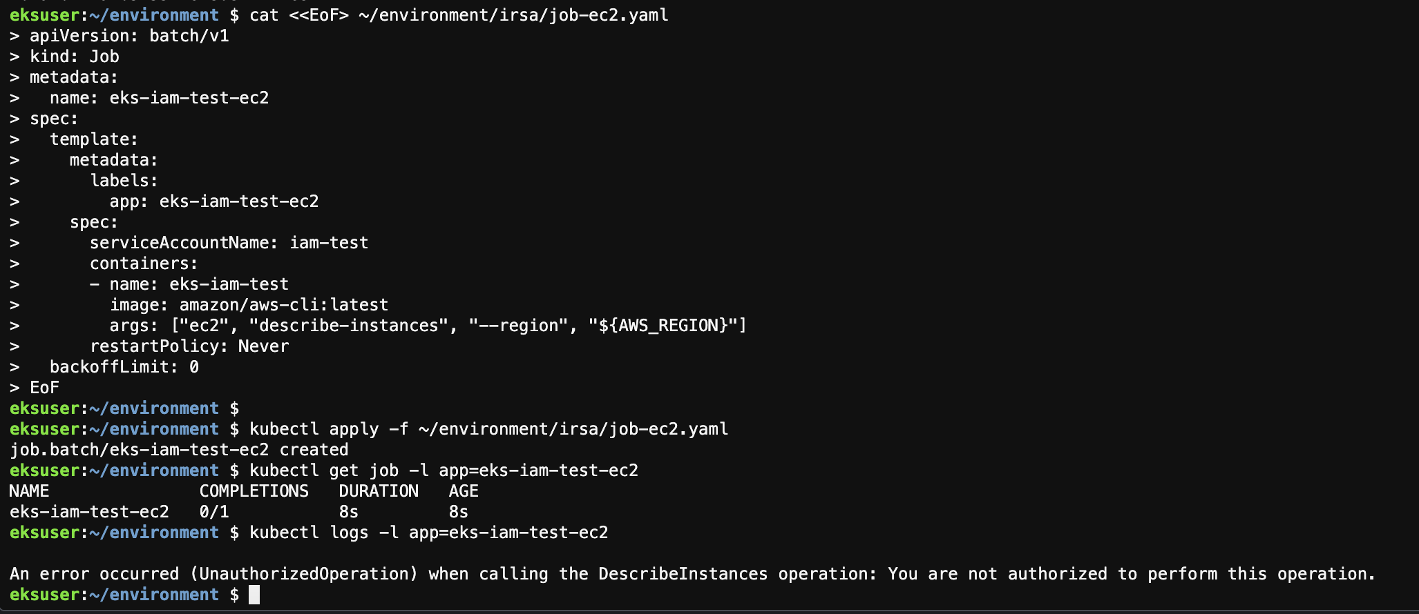 kubectl apply -f ~/environment/irsa/job-ec2.yaml