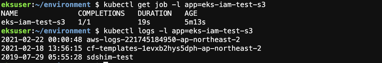 kubectl apply -f ~/environment/irsa/job-s3.yaml