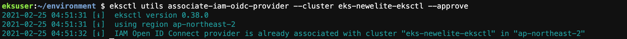 eksctl utils associate-iam-oidc-provider --cluster eksworkshop-eksctl --approve