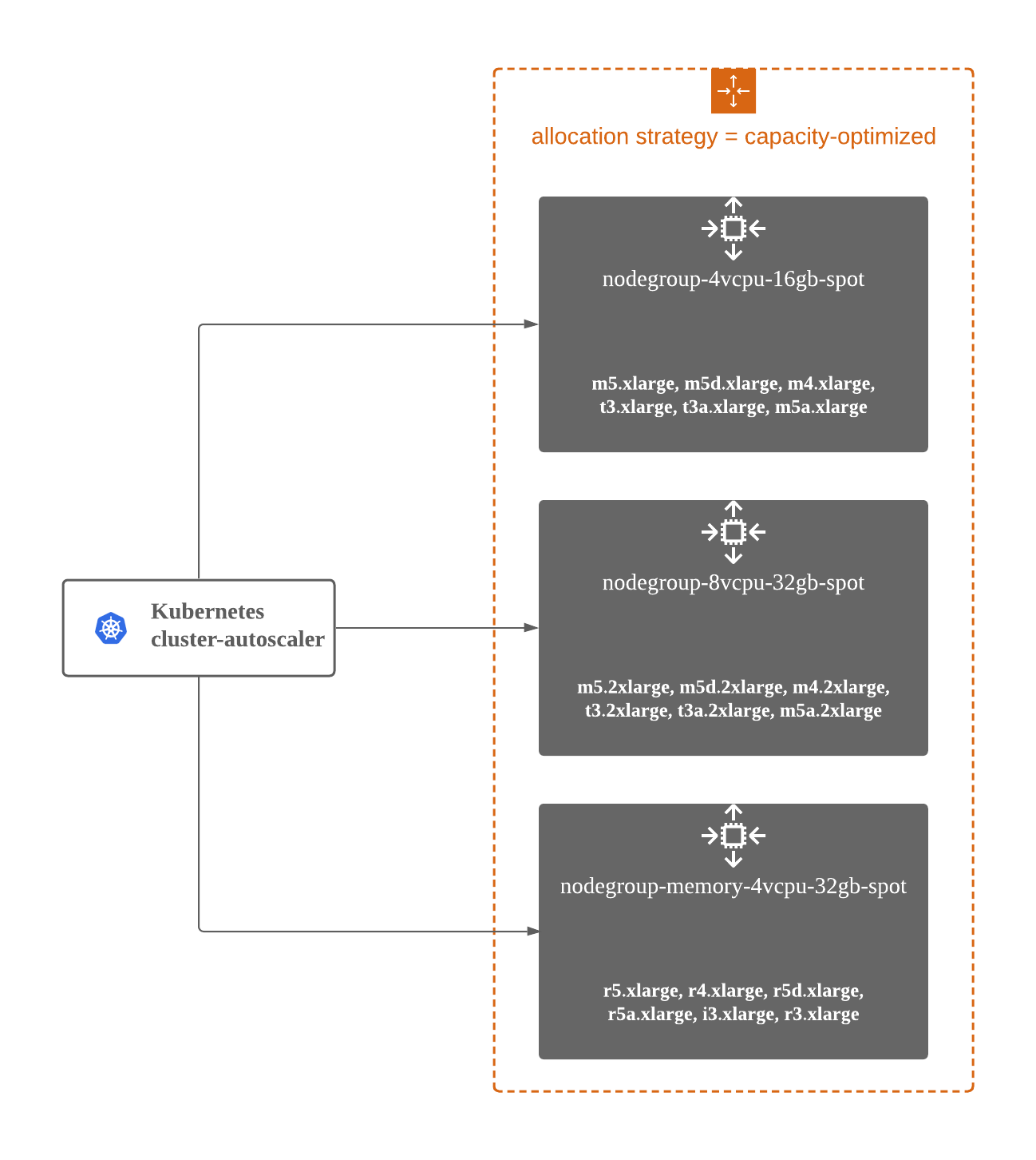spotAllocationStrategy: capacity-optimized # launch Spot Instances from the most availably Spot Instance pools