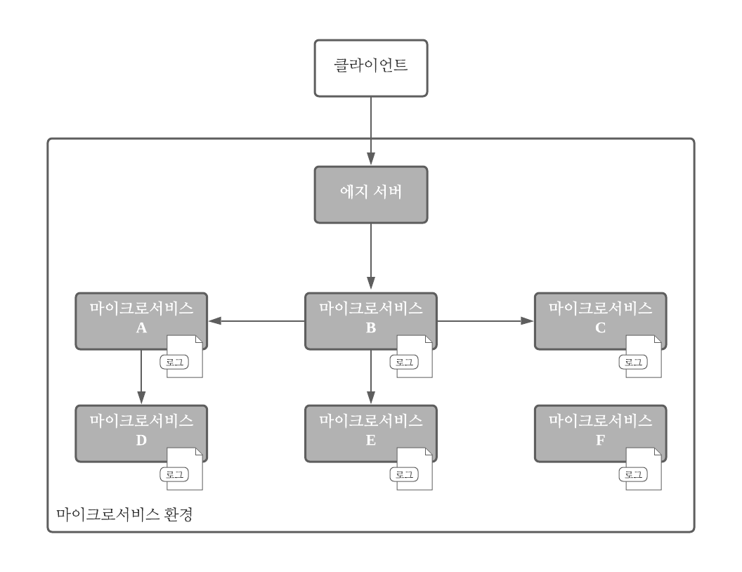 - 각 마이크로서비스 인스턴스가 로컬에 로그 파일을 기록하는 상황에서 전체 시스템 환경에서 발생하는 사건을 개괄하려면 어떻게 해야 하는가?