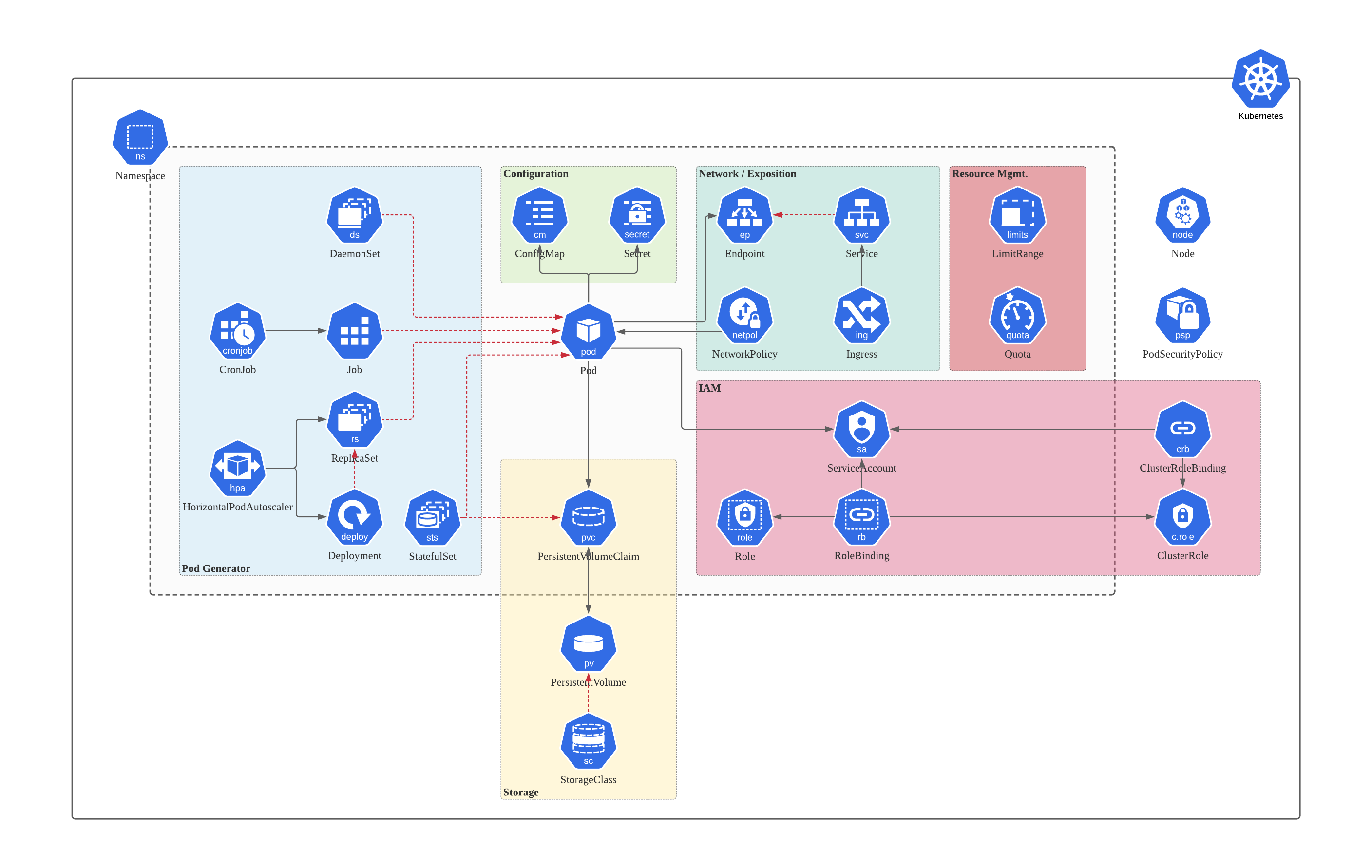 Kubernetes 전체 Resource Map을 그려보면서 각 영역에 대한 연관관계에 대한 이해를 한눈에 볼 수 있다.