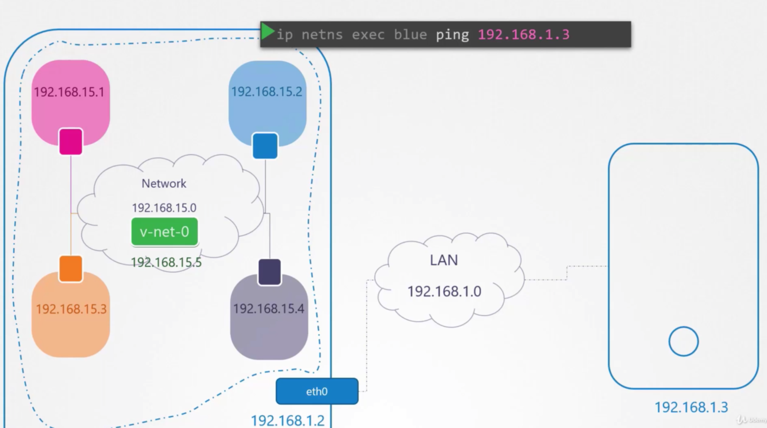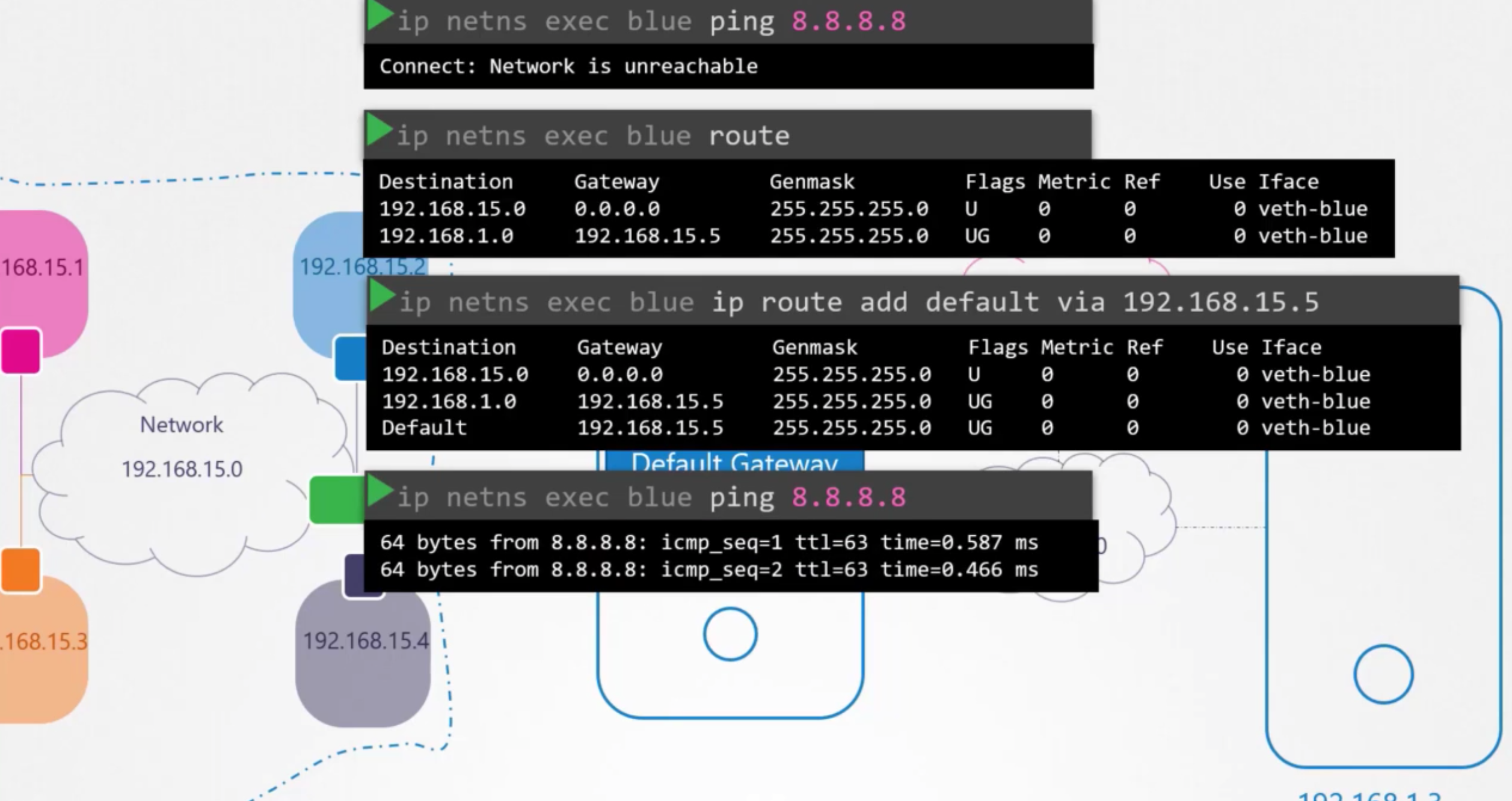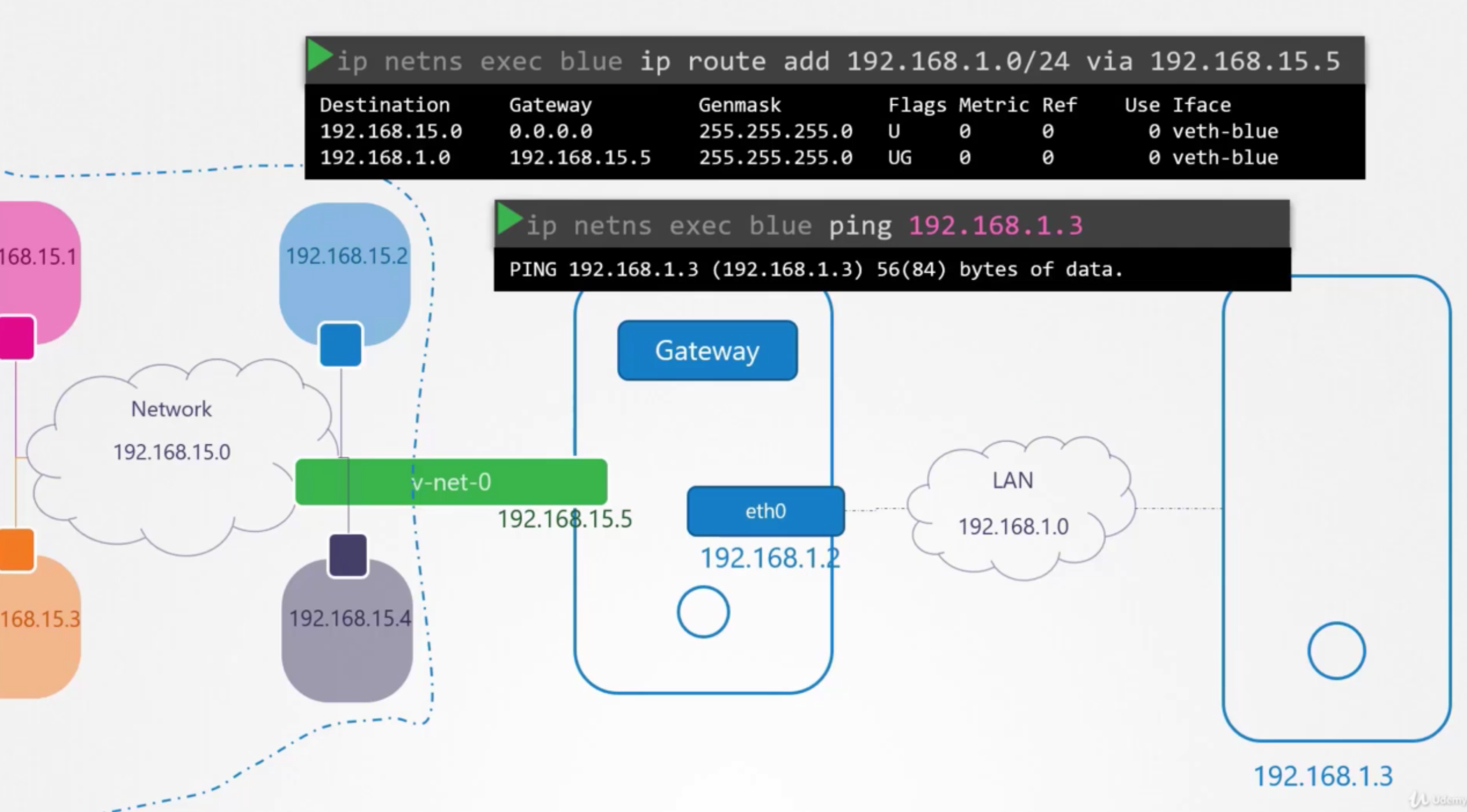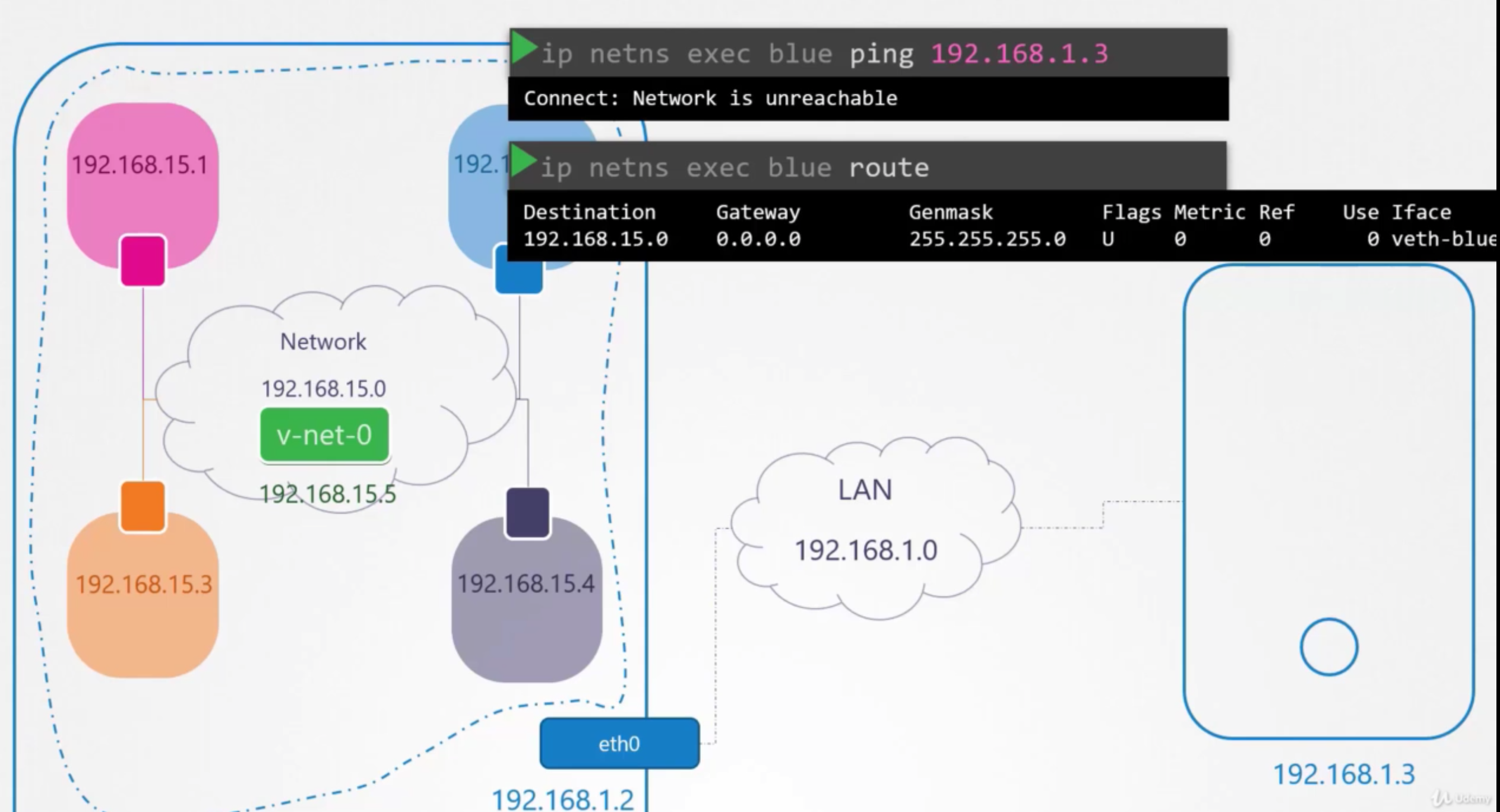While testing the Network Namespaces, if you come across issues where you can't ping one namespace from the other, make sure you set the NETMASK while setting IP Address. ie: 192.168.1.10/24