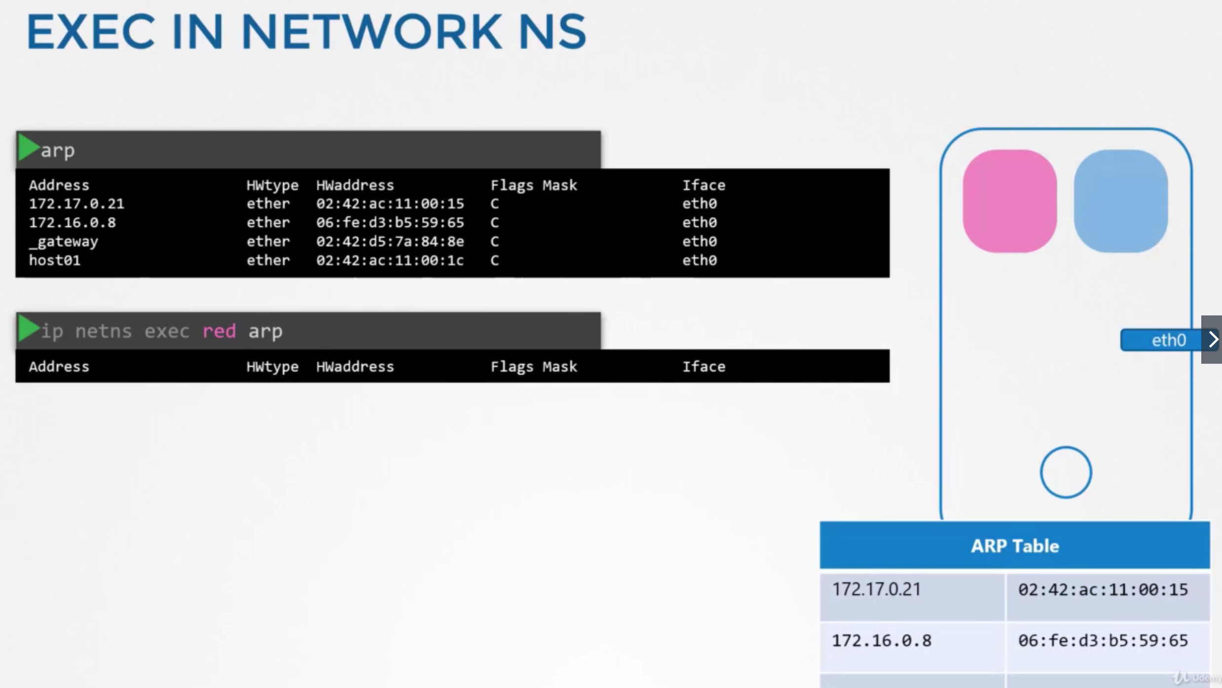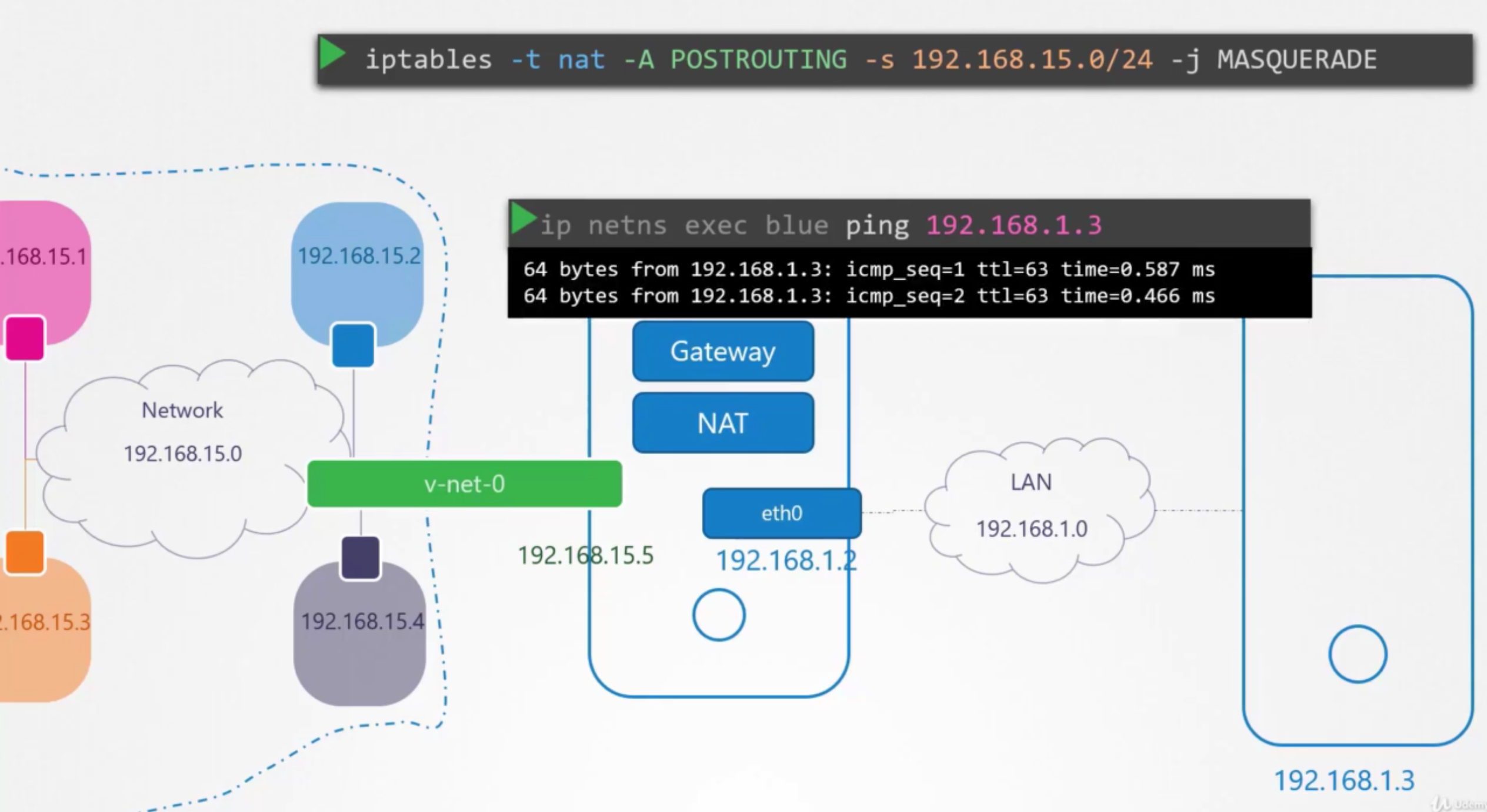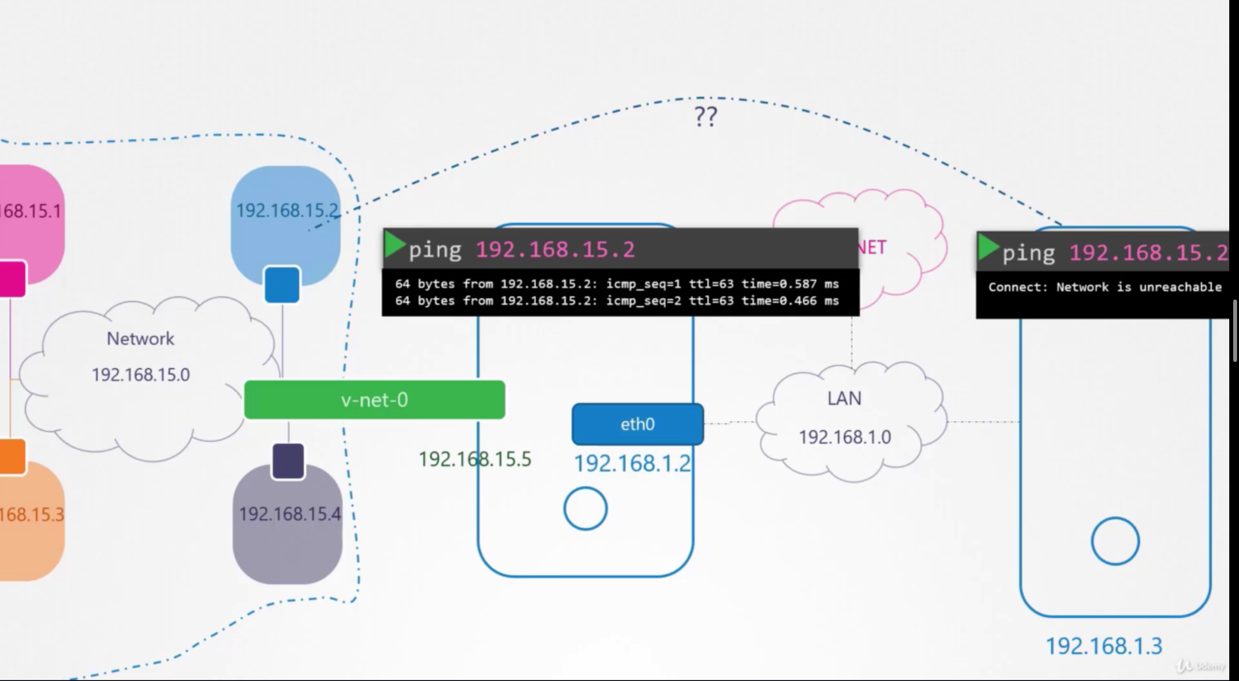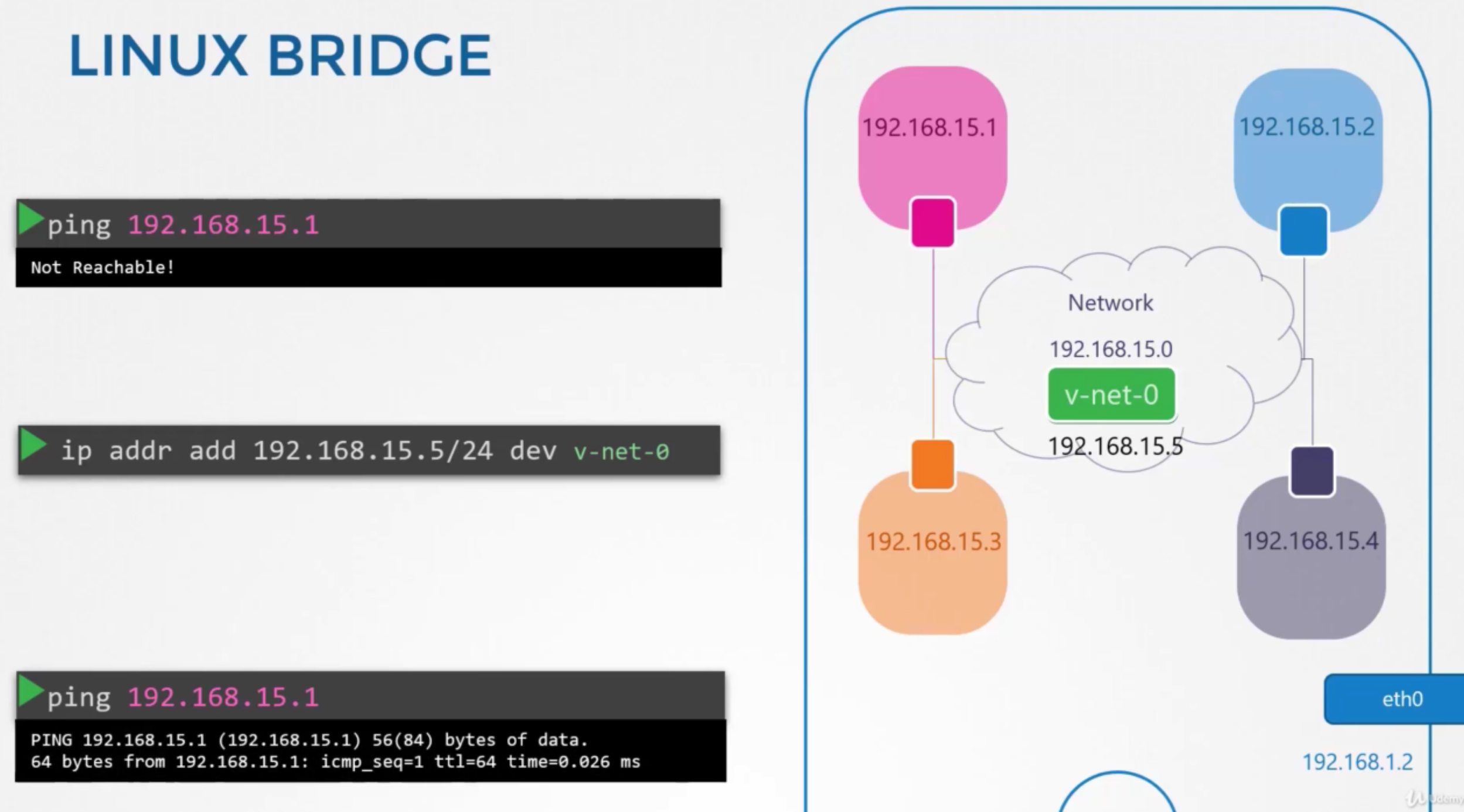 While testing the Network Namespaces, if you come across issues where you can't ping one namespace from the other, make sure you set the NETMASK while setting IP Address. ie: 192.168.1.10/24