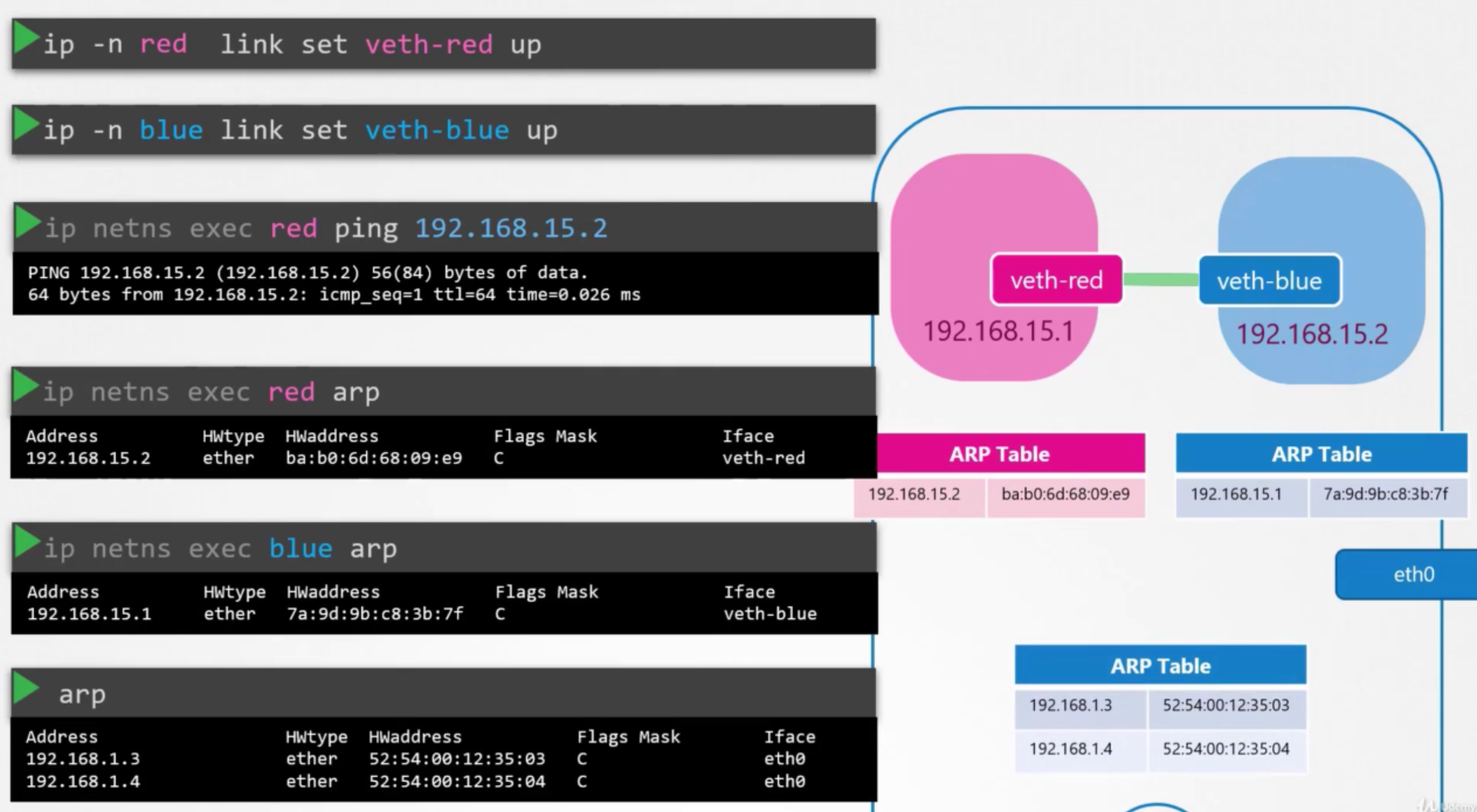 ip -n red addr add 192.168.1.10/24 dev veth-red