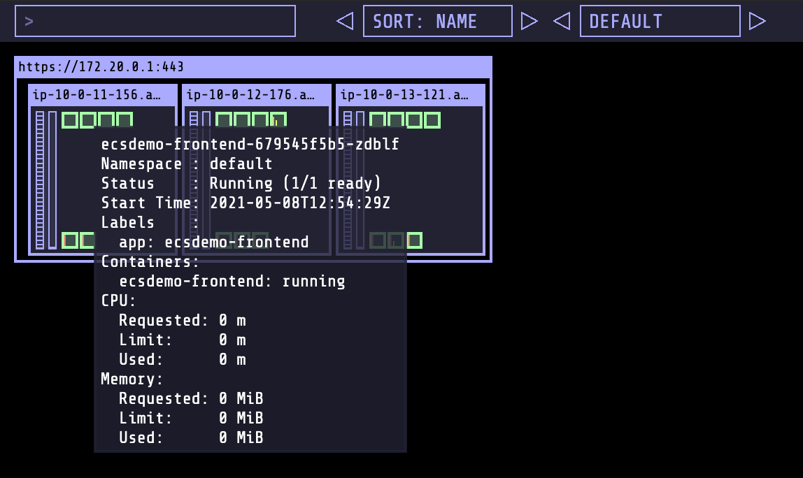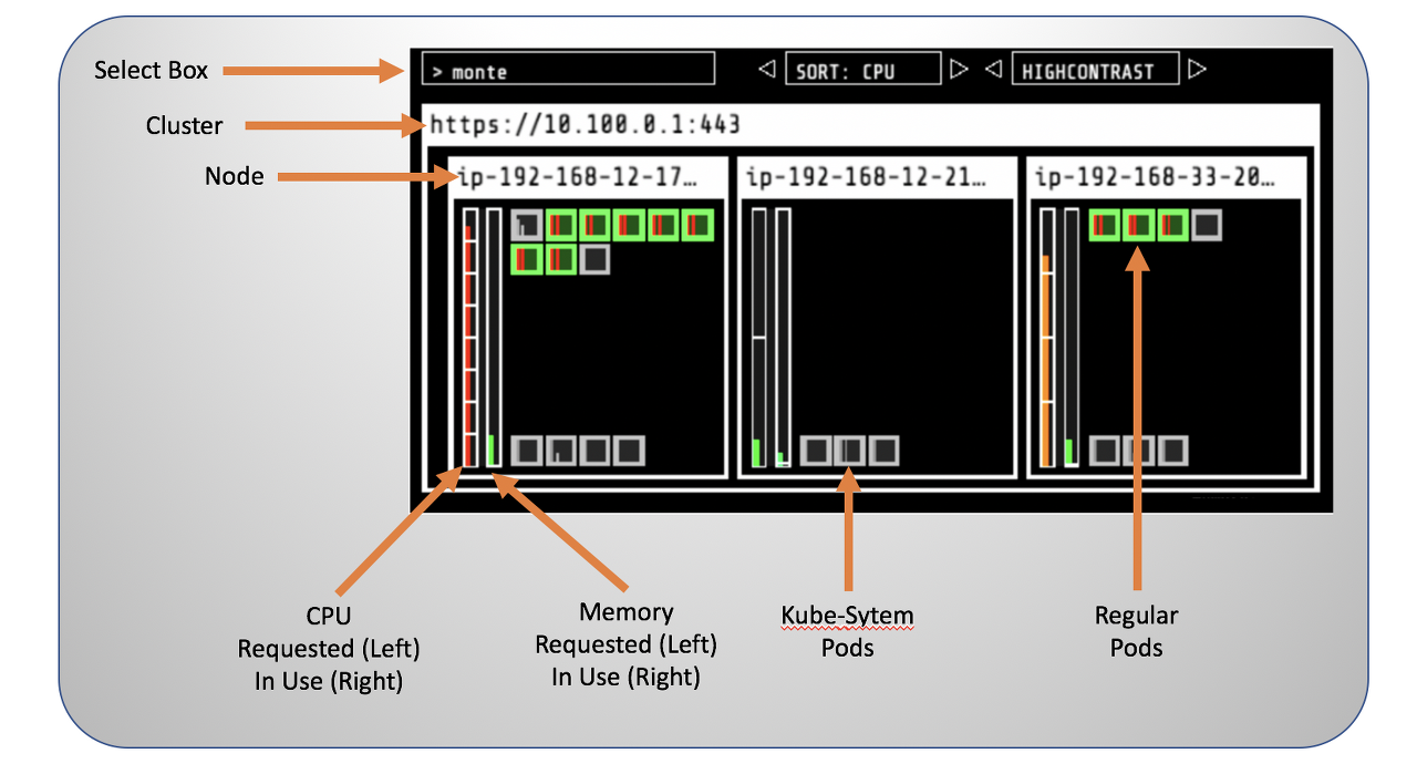 kube-ops-view의 각 메뉴 표시는 다음과 같다.