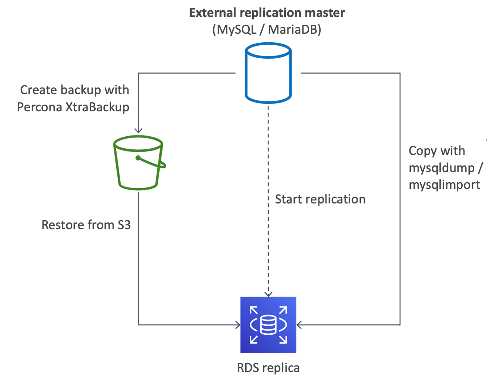 - Replication b/w an external DB and an RDS replica