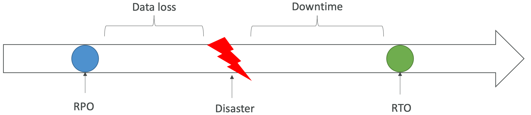 - Expressed in hours (e.g. RPO of 1 hour means you could lose an hour worth of data)