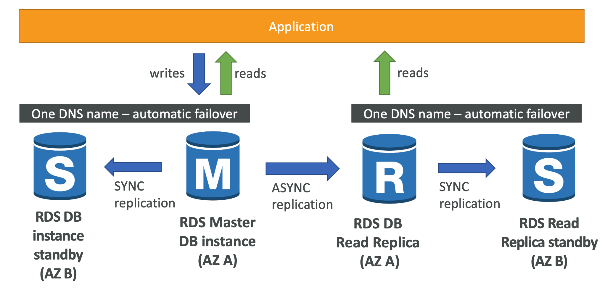 - Offers SYNC replication to standby instance in another AZ over low latency links