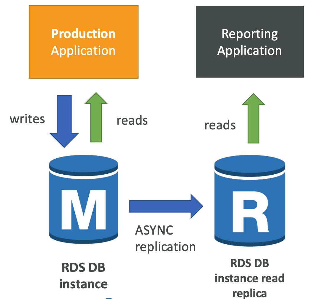 - Read replicas are used for SELECT (=read) only kind of statements (not INSERT, UPDATE, DELETE)