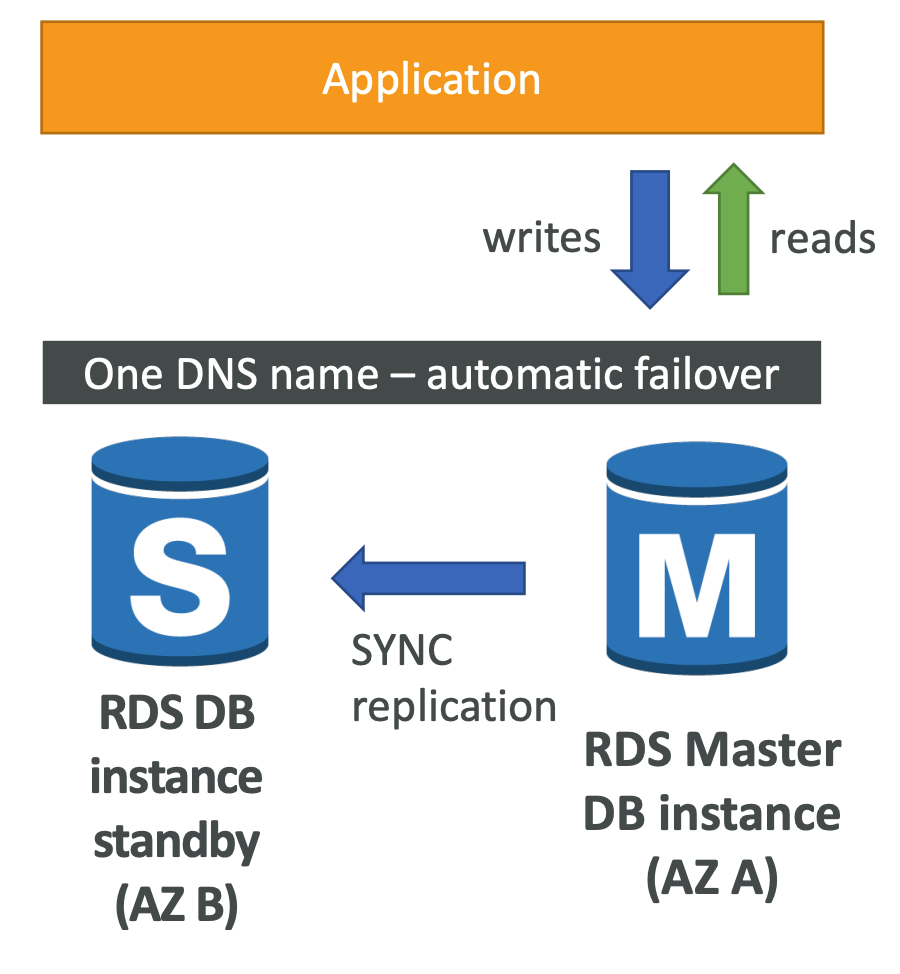 - Performs automatic failover to standby instance in another AZ in case of planned or unplanned outage
