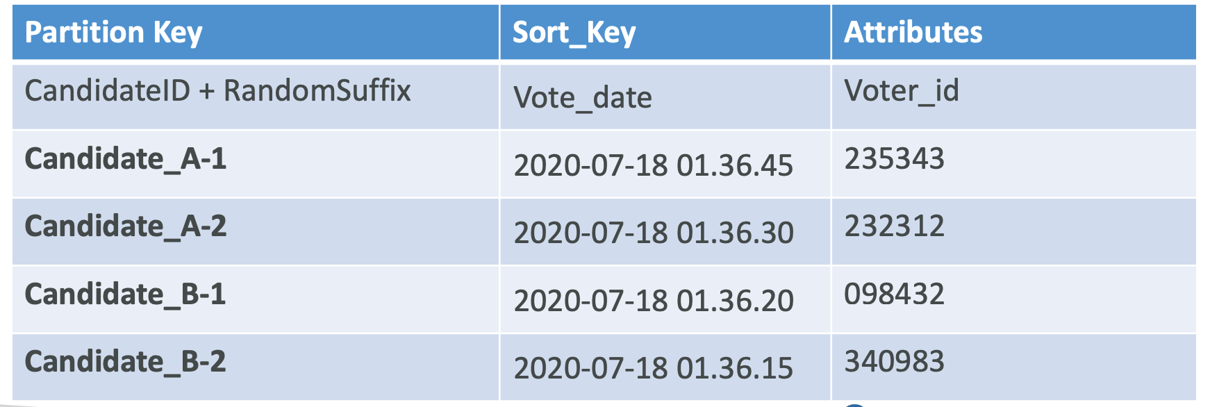 - Candidate_Id의 파티션 키를 사용하면 파티션이 두개뿐이므로 파티션 문제 발생