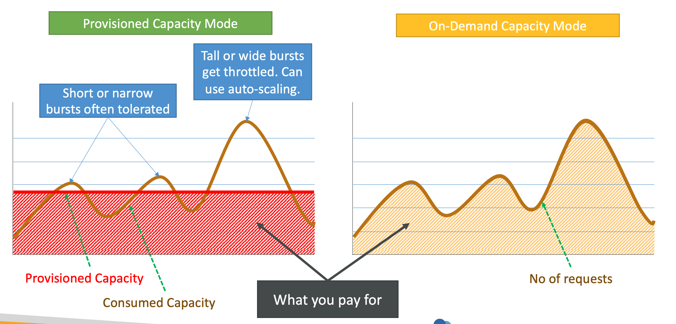 - 프로비저닝한 용량에 대해 비용 지불 (= 초당 읽기 및 쓰기 수)