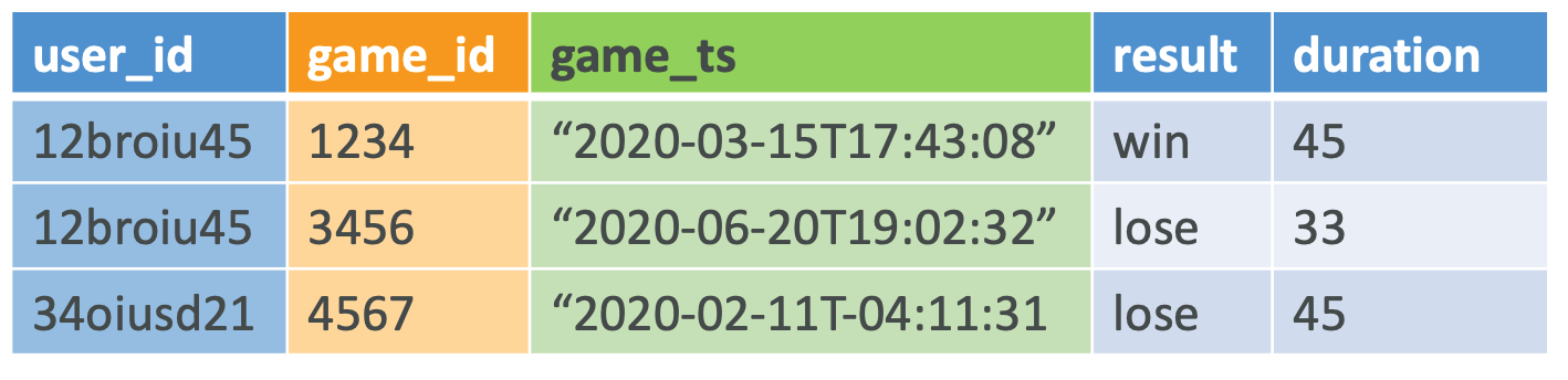 user_id는 PK, game_ts는 SK(1:N 모델링) - 게임 리더 보드 - N:M 모델링