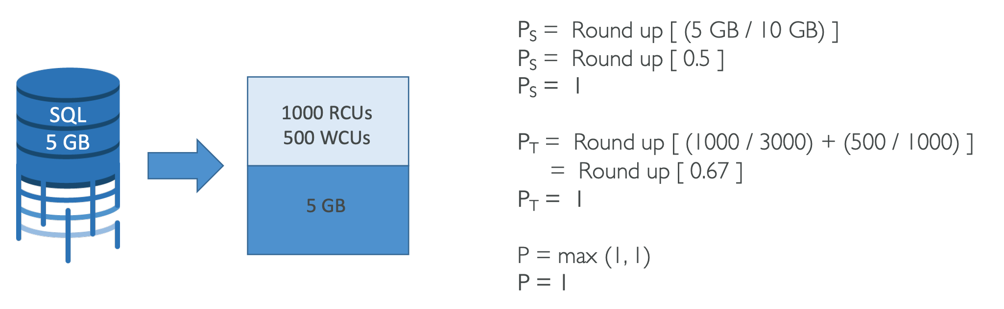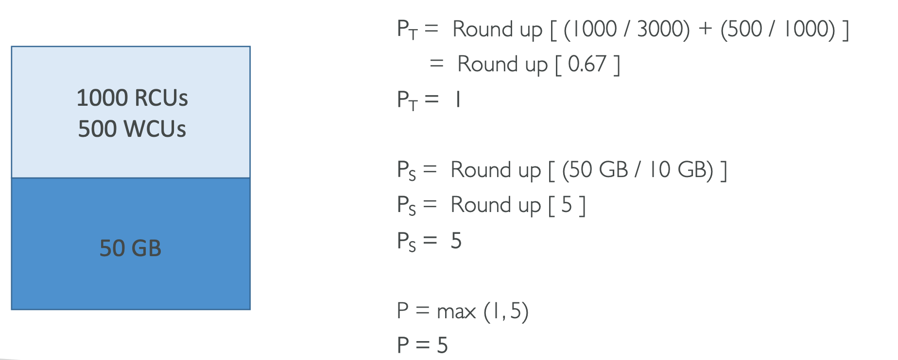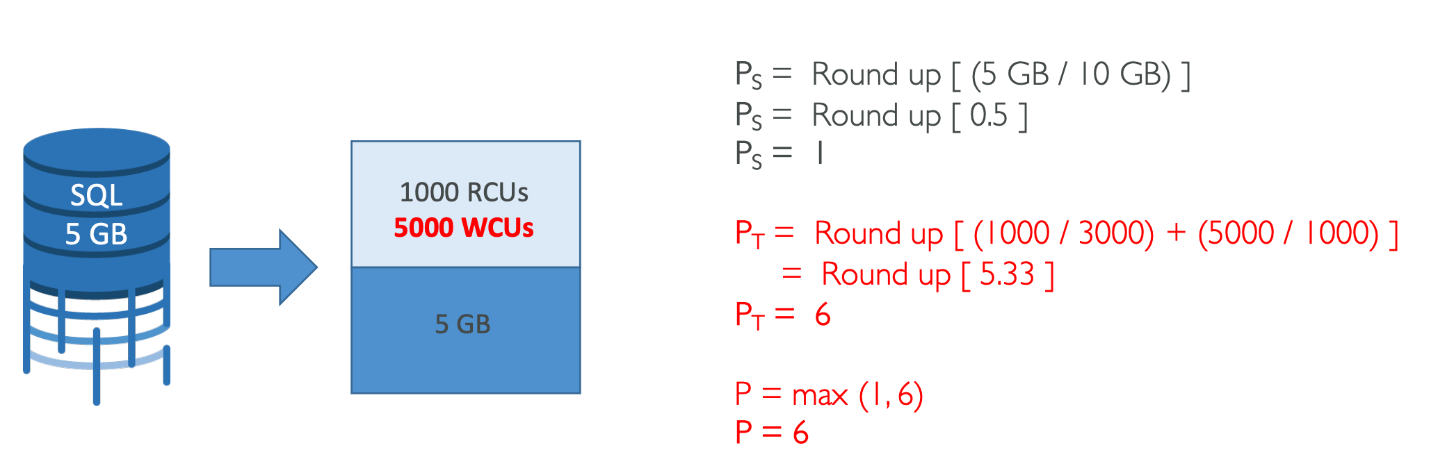 P = (1000 RCUs/3000 + 1000 WCUs/1000)