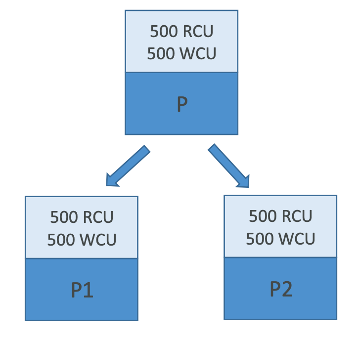 = 0.67 => rounded up => 1 parition - Say, we scale up the provisioned capacity