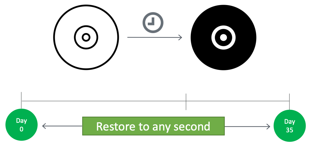 - Restore table data to any second in the last 35 days!