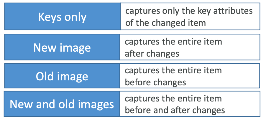 - Must enable DynamoDB Streams with New and Old Images