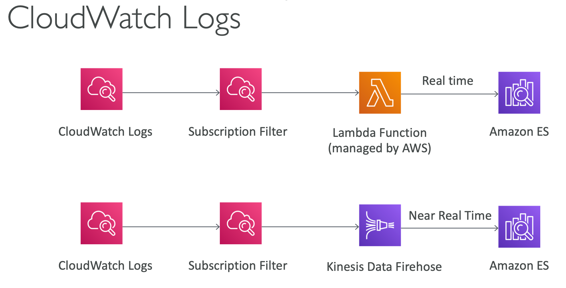 - Logstash - provides log ingestion mechanism, alternative to CloudWatch Logs