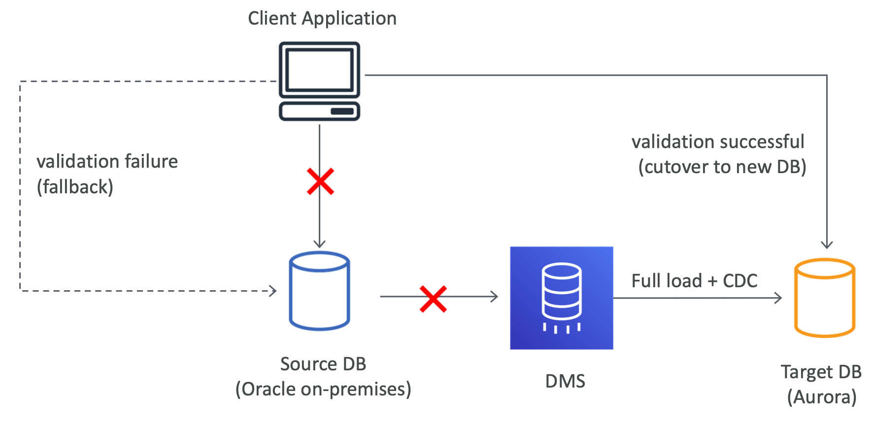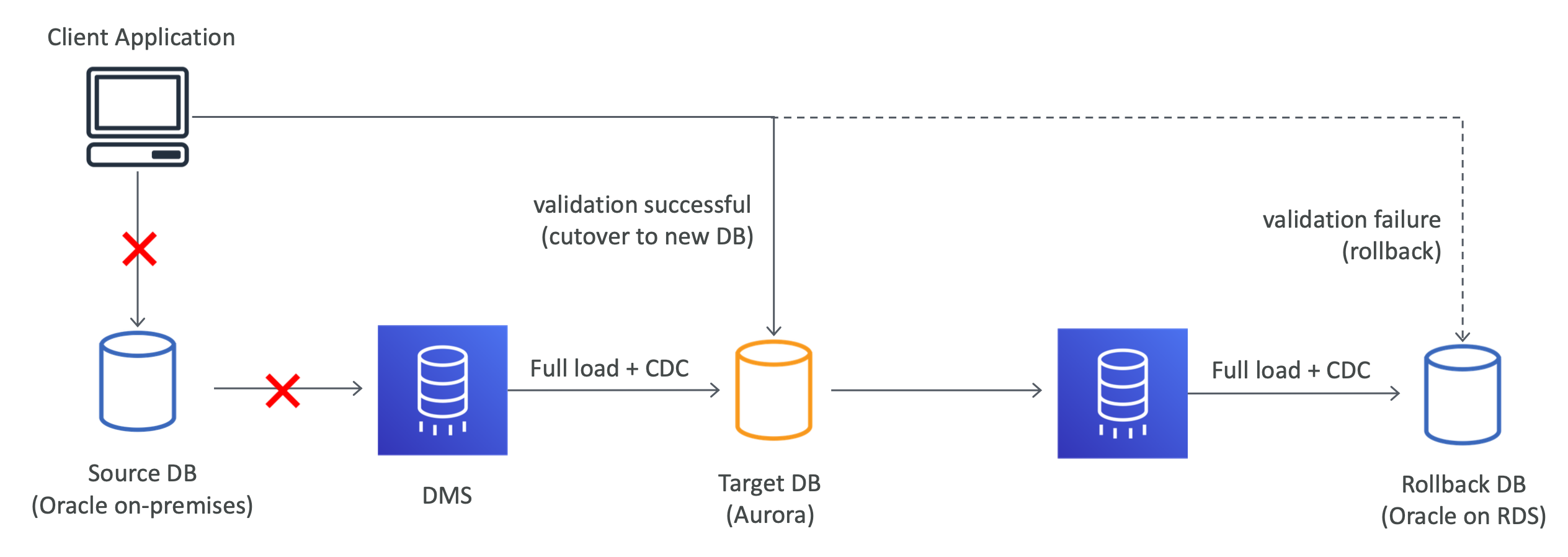 - Full load using DMS (migrate shcema with native tools first)