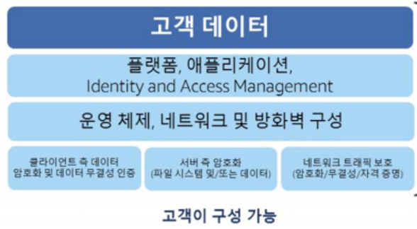 ①. 데이터 센터: 위치가 공개되지 않는 시설, 연중 무휴 24시간 보안 경비, 2 Factor 인증, 액세스 로깅 및 검토, 비디오 감시, 디스크 자기 소거 및 폐기