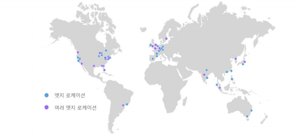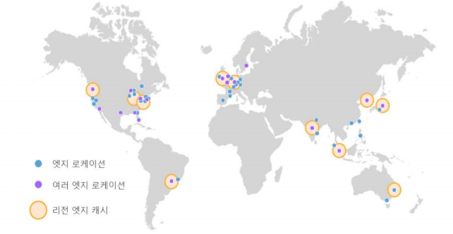 Edge Location은 북미, 유럽, 아시아, 호주 및 남미에 위치해 있으며 Amazon Route 53 및 Amazon CloudFront와 같은 AWS 서비스를 지원