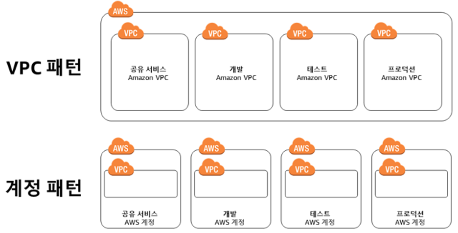 - 액세스 및 표준 관리는 조직이 복잡할수록 어려울 수 있어 복수 계정 패턴이 적합