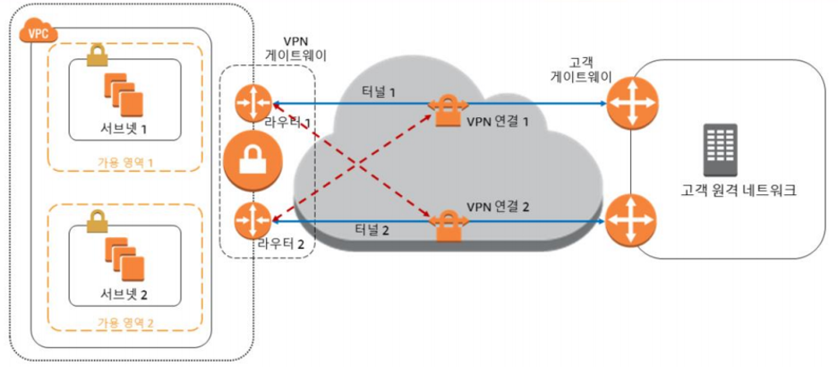 - VPN 연결 장애를 대비하여 VPC에 대한 두번째 VPN 연결 설정