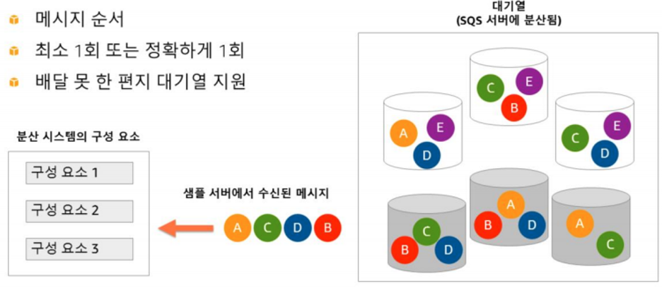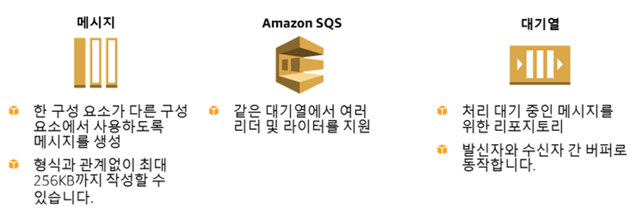 Amazon SQS는 완전 관리형 메시지 대기열 서비스로 메시지를 손실하거나 다른 서비스를 항상 가용 상태로 유지 하지 않고 처리량과 관계없이 모든 볼륨의 메시지를 전송