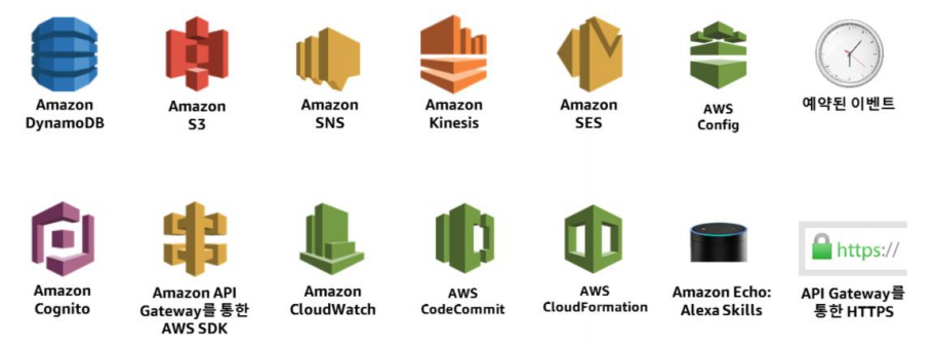 AWS Lambda는 다음과 같은 이벤트 발생 후 수 밀리초 내에 코드 시작