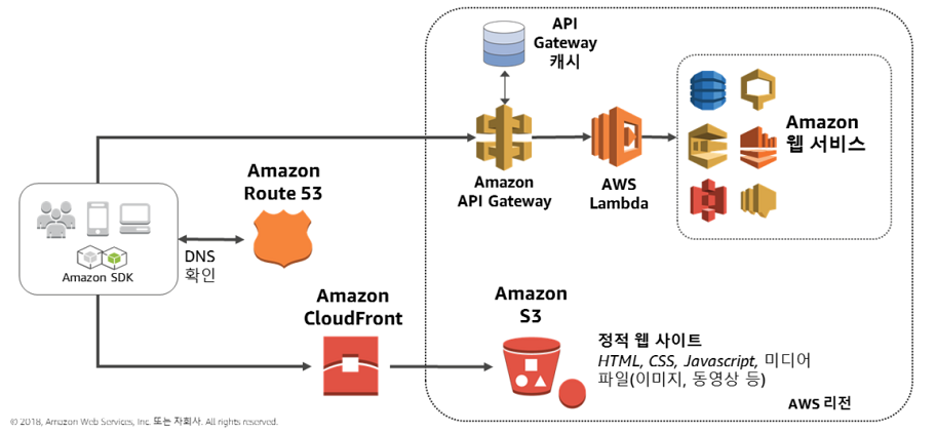 - Amazon CloudFront를 통해 지연 시간 단축 및 분산 서비스 거부(DDoS) 보호