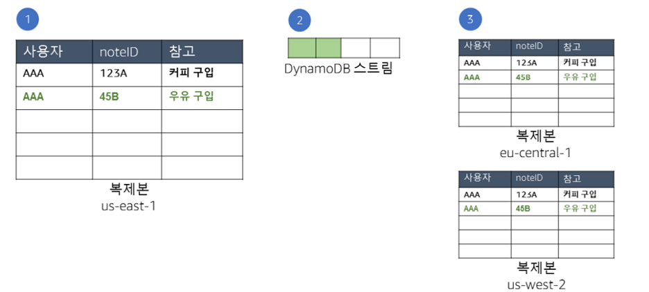 ㅁ 복제 테이블 항목의 모든 변경 사항은 동일한 글로벌 테이블 내 다른 모든 복제 테이블에 복제