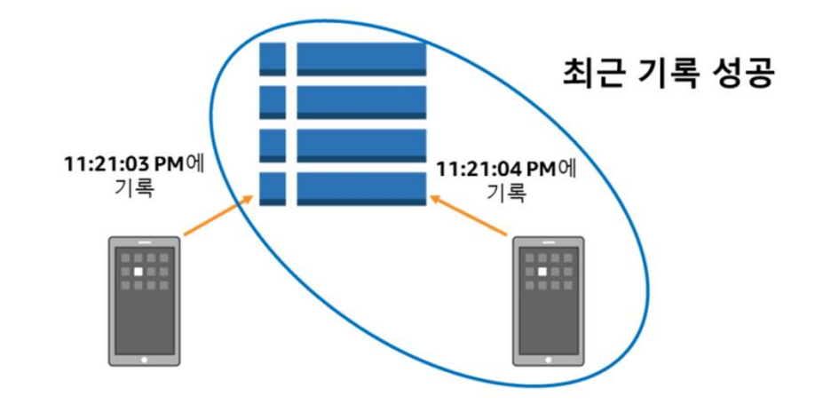 ㅁ 이 충돌 해결 메커니즘을 사용하면 모든 복제가 최신 업데이트에 동의하고 모두 같은 데이터를 가진 상태로 수렴