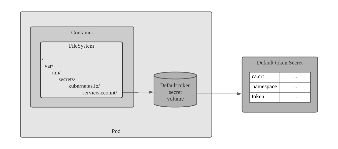 이 항목은 포드에서 쿠버네티스 API 서버와 안전하게 통신하기 위해 필요한 모든 것을 나타낸다.