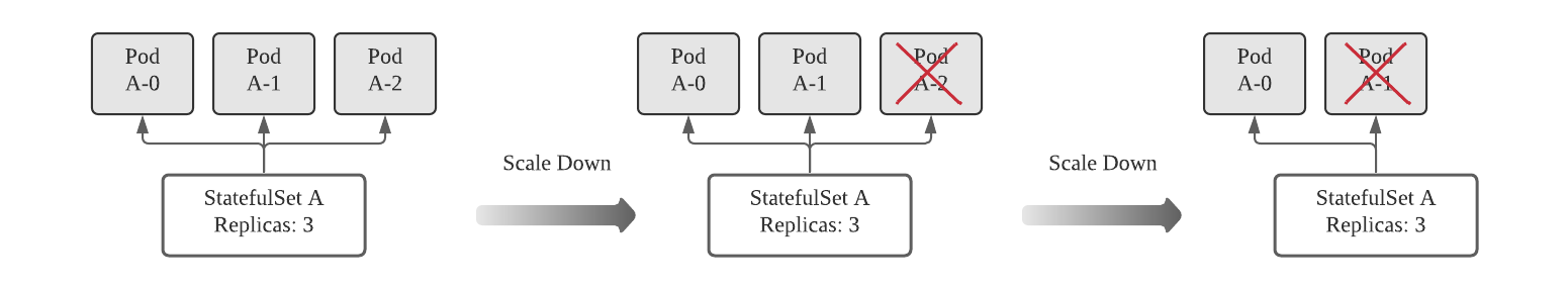 스테이트풀셋을 스케일다운하면 항상 가장 높은 서수 인덱스가 있는 인스턴스가 제거된다.