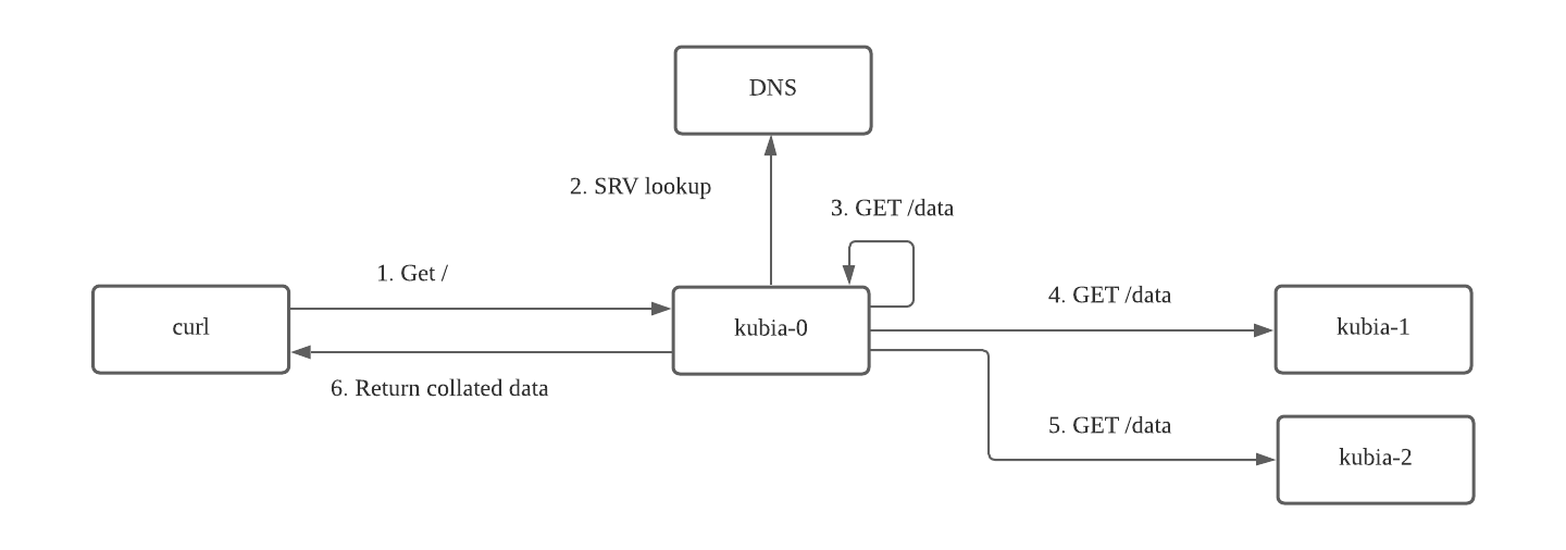 - kubia-1.kubia.default.svc.cluster.local: The sun is shining