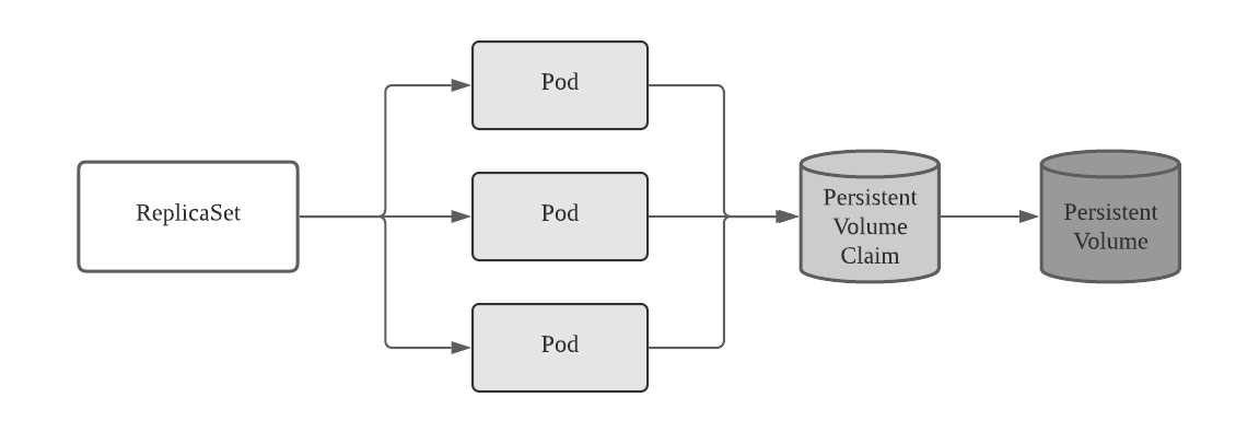 - 포트 템플릿에 특정 PersistentVolumClaim을 참조하는 볼륨이 있으면 레플리카셋의 모든 복제본은 동일한 PersistentVolumeClaim사용하므로 Claim에 바인딩된 동일한 PersistentVolume을 사용함