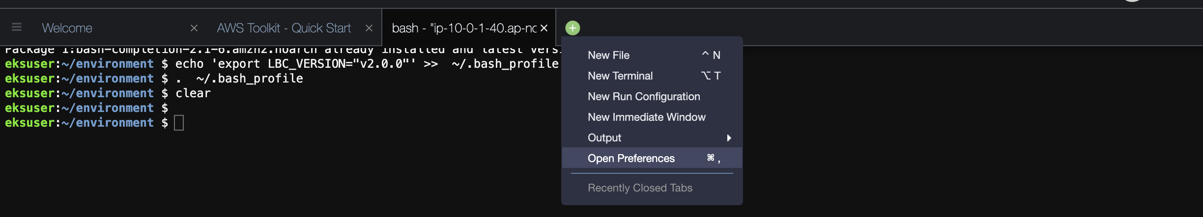 echo "export AWS_REGION=${AWS_REGION}" | tee -a ~/.bash_profile
